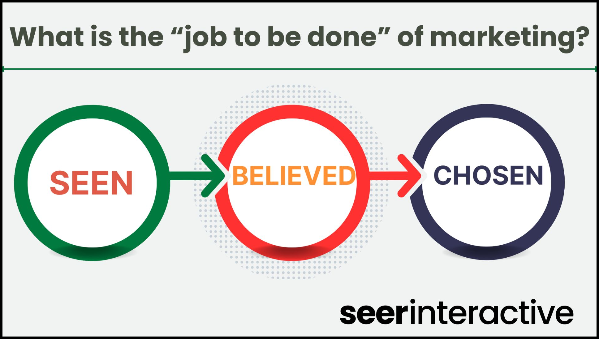 The goal isn't just to be visible (seen) but to have actual humans believe your company can solve their problems and to choose you to solve them.