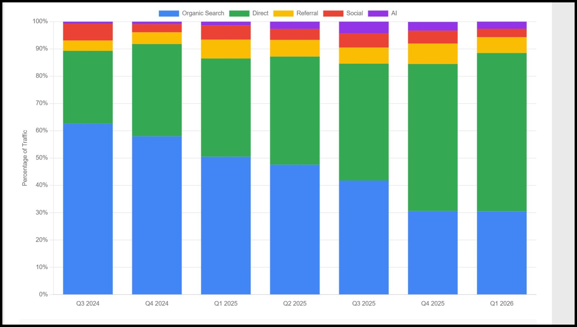 - AI traffic plateaus > Expected, it's a new channel