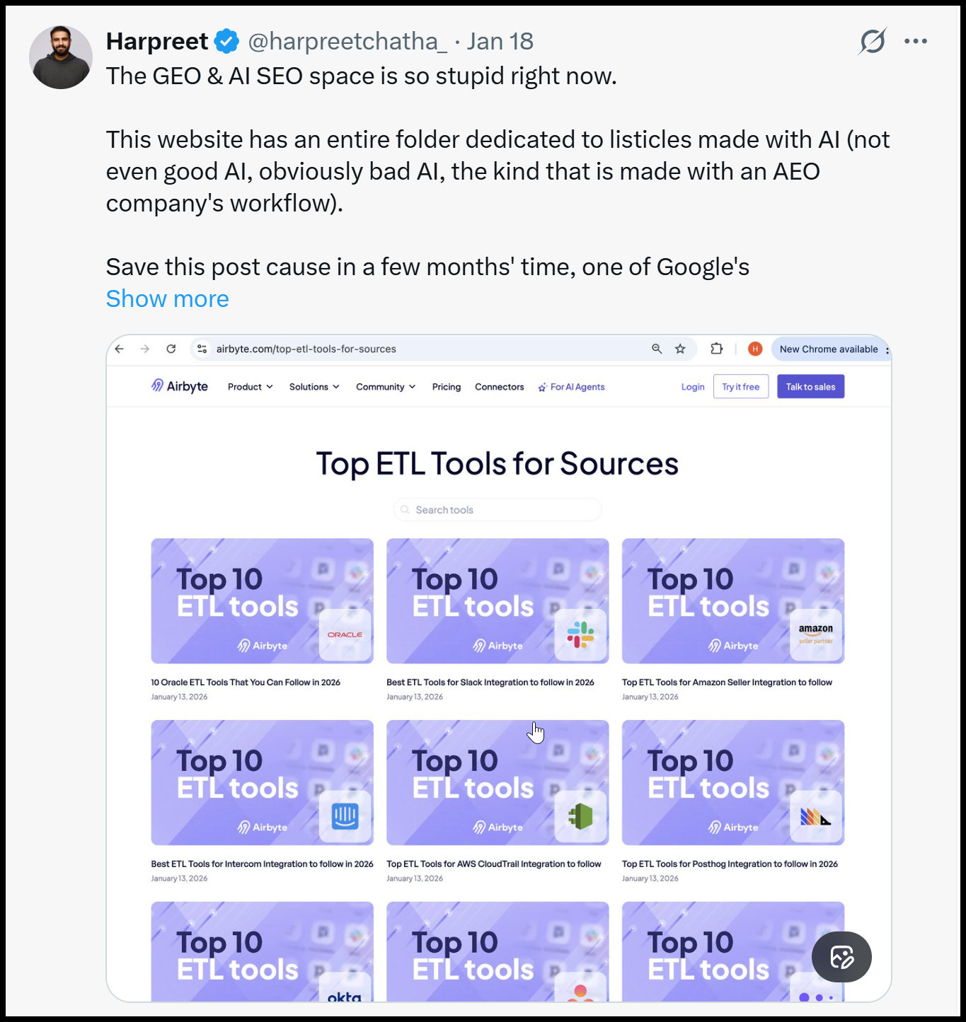 Like if you produce this content, your only chance is to get AI visibility, cause NO human with a reputation is sharing this auto generated crap with their CMO group.