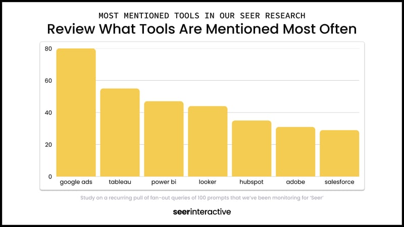 Partners, tools, and third parties were frequently mentioned in the fan-outs for prompts we're tracking. This could give us a signal of what Gemini “thinks” is relevant to your space.