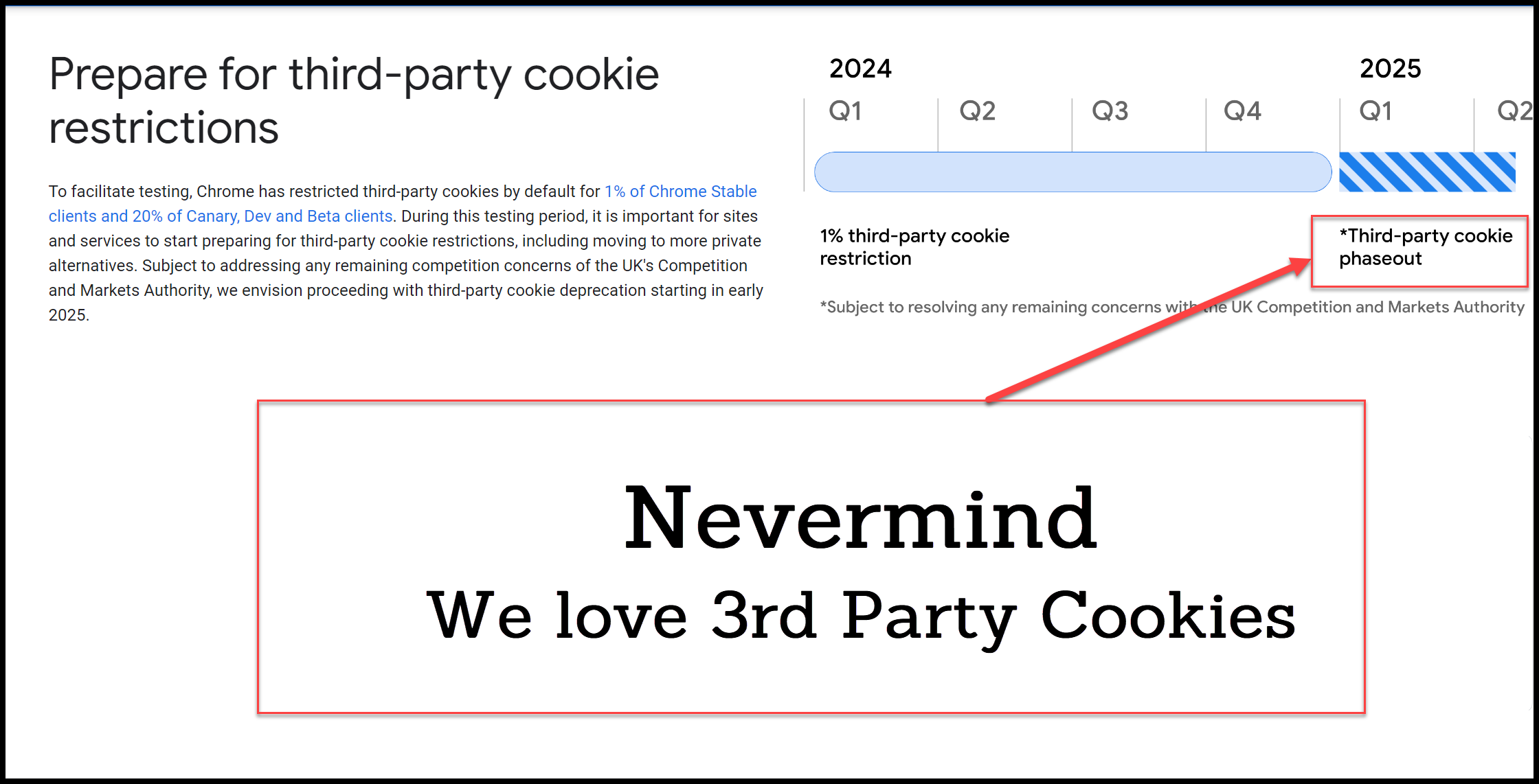 Yesterday, in a somewhat unsurprising turn of events, Google reversed its decision to deprecate third-party cookies in Chrome. This marks the fourth change of heart since Google introduced the Privacy Sandbox initiative, originally slated for 2020, then pushed to 2022, and delayed again to 2024. This might be the final nail in the coffin for Google’s ambitious plan.