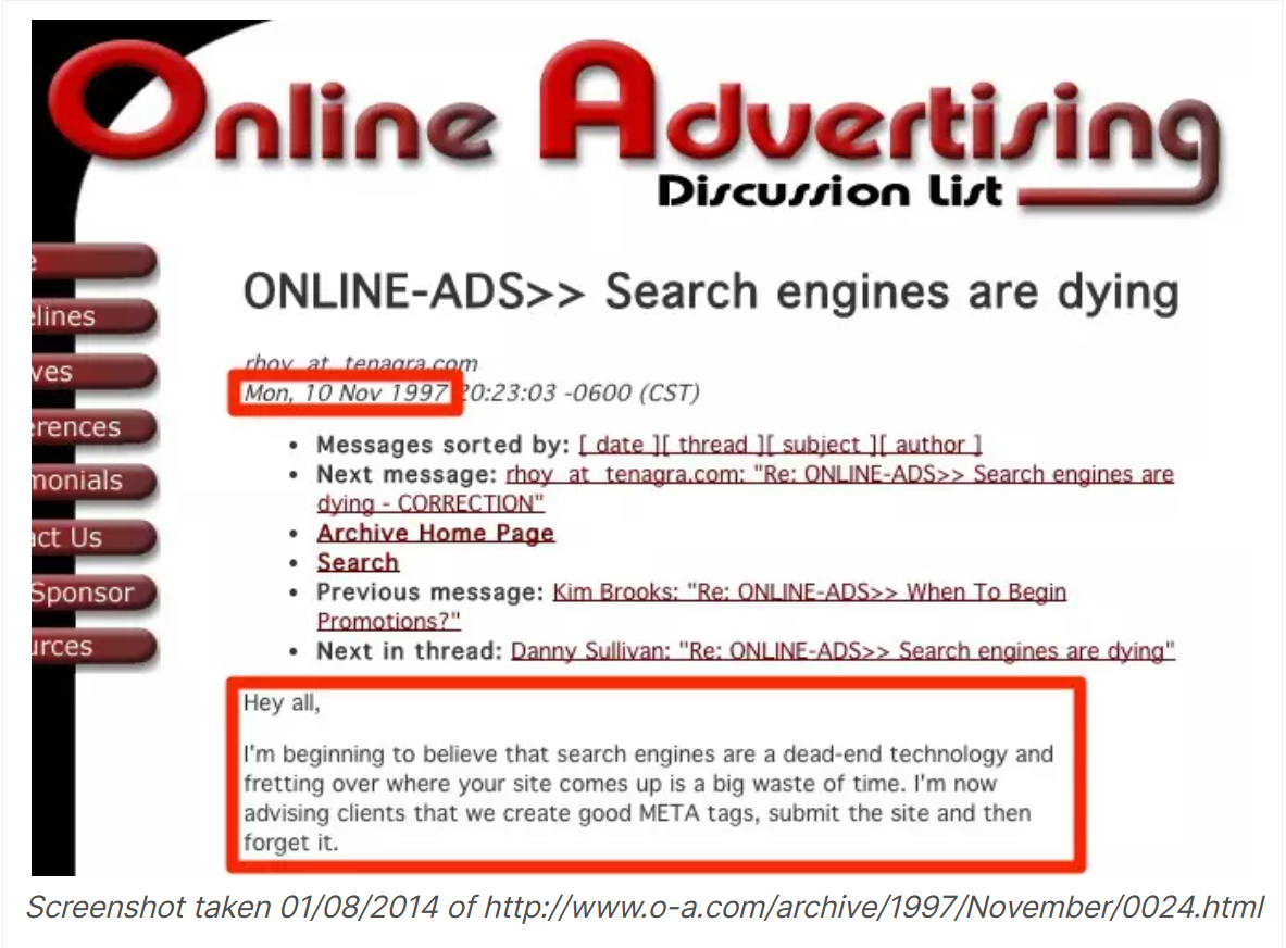 Do you know the first instance of someone saying SEO is dead? 1997.