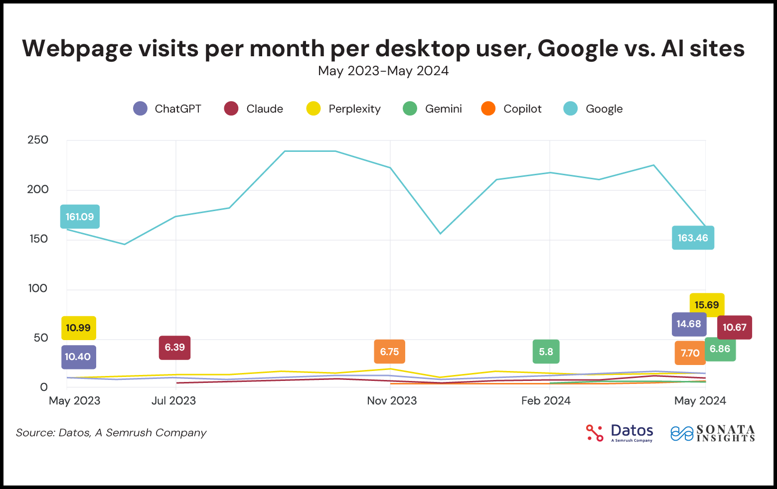 3. **Who is _actually_ winning the long game?** Google’s bet on integrating AI into the products people use today is an important one. OpenAI’s game has felt a bit like checkers over the past year. They’ve been quick to news jack AI achievements by dropping their new products, or clap back at competitors rising in the ‘LLM leaderboards’ with a freshly tuned model. That’s been fun to watch, but Google may be playing chess right now. This time next year they may not have “the best” AI on the planet, but they very likely will have the most used.